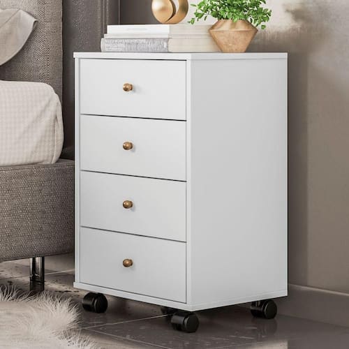 Mesa De Cabeceira 4 Gavetas Selte Branco A Mesa de Cabeceira é ideal para seu dormitório.