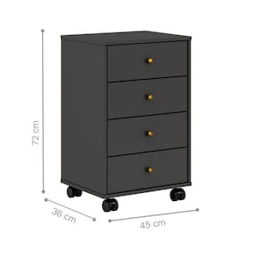 Além de suas quatro gavetas, ele ainda vem com um jogo de rodízios, facilitando assim o seu transporte, se necessário!