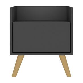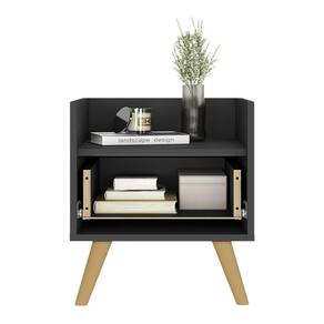 Mesa De Cabeceira 40cm Retrô Multimóveis V4041 Preta/natural Preto/natural A Mesa de Cabeceira 40 cm com Pés Retrô Multimóveis é uma solução prática para você deixar seu quarto mais bonito e complementar seu ambiente. Produzida em MDP com acabamento acetinado (cerca de 20% de brilho), que garante maior durabilidade e facilidade na limpeza, possui 1 gaveta com amplo espaço interno e corrediças metálicas que proporcionam mais leveza no manuseio. Os pés retrô, em polipropileno, dão um charme especial ao móvel deixando-o com um visual leve e permitindo você compor um ambiente com ar vintage e moderno ao mesmo tempo. Seu design clean permite que ela seja utilizada em diferentes ambientes, adaptando-se conforme sua necessidade. Conteúdo da Embalagem: 1 (uma) mesa de cabeceira 1 (um) kit com 4 pés retrô