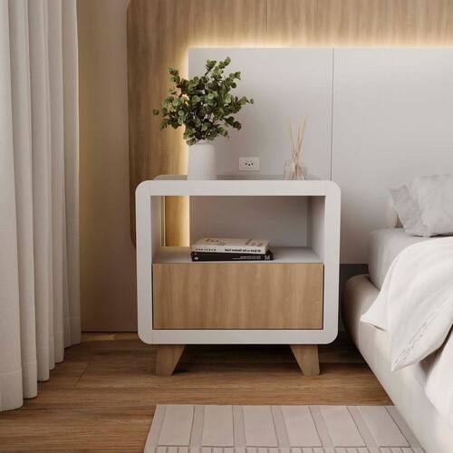 A Mesa de Cabeceira Mabel é a escolha ideal para quem busca elegância, funcionalidade e qualidade com o mesmo padrão dos móveis planejados. Produzida em 100% MDF com revestimento BP e acabamento em fita de borda PVC 0,045cm, garante durabilidade, resistência e acabamento sofisticado. Com 1 gaveta espaçosa e 1 nicho aberto, é perfeita para organizar livros, objetos pessoais e apoiar luminárias ou itens decorativos. Seu design moderno com pés robustos traz leveza e versatilidade, combinando facilmente com cabeceiras, camas e guarda-roupas em diferentes estilos. Com 55 cm de altura e 38 cm de profundidade, oferece praticidade no dia a dia sem abrir mão da beleza. Acabamento da Gaveta: Melamínico Acabamento dos Pés: Melamínico Altura dos Pés: 11,5 cm Ambiente Principal: Quarto Complexidade da Montagem: Média: pode ser montado por mais de uma pessoa e/ou necessite de maior conhecimento para montagem Cor: Branco/ Louro Freijó Grann Cor do Produto: Branco/ Louro Freijó Grann Cor Flex: Não Cor Interna: Branco Escala de Brilho: Fosco Escala de Brilho da Gaveta: Fosco Gaveta com Chave: Não Informações Complementares: Limpar somente com um pano levemente umedecido. Indicado para ambientes internos. Itens Inclusos: 1 Mesa de Cabeceira, Kit Ferragens e Manual de Montagem Linha ou Coleção: Mabel Manual de Montagem e Instalação: https://product-hub-prd.madeiramadeira.com.br/164036151/documents/c4cee90c-96f8-4be2-a240-94f17e75a2443105423657817538765459999.pdf Marca: FD Material da Gaveta: MDF Material dos Pés: MDF Material Principal: MDF Montagem Flex: Não Necessita Montagem: Sim Origem do Produto: Nacional Pés Reguláveis: Não Peso: 15 kg Peso Máximo por Gaveta: 5 kg Pet Friendly: Não Possui Espelho: Não Possui Possui Nichos: 01 Possui Pés: 04 Possui Portas: Não Possui Prateleiras: Não Possui Vidro: Não Quantidade de Nichos: 01 Recomendações de Uso, Manutenção e Limpeza: Limpar somente com um pano levemente umedecido. Indicado para ambientes internos Sapatas Niveladoras: Não Sistema de Montagem: Parafusos, cavilhas e minifix Suporta Até (kg): 5 kg Tipo de Corrediça da Gaveta: Metálica Telescópica Tipo de Puxador da Gaveta: Embutido