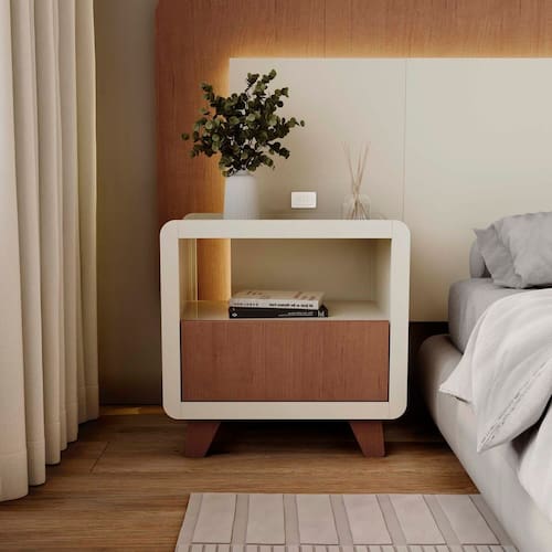 A Mesa de Cabeceira Mabel é a escolha ideal para quem busca elegância, funcionalidade e qualidade com o mesmo padrão dos móveis planejados. Produzida em 100% MDF com revestimento BP e acabamento em fita de borda PVC 0,045cm, garante durabilidade, resistência e acabamento sofisticado. Com 1 gaveta espaçosa e 1 nicho aberto, é perfeita para organizar livros, objetos pessoais e apoiar luminárias ou itens decorativos. Seu design moderno com pés robustos traz leveza e versatilidade, combinando facilmente com cabeceiras, camas e guarda-roupas em diferentes estilos. Com 55 cm de altura e 38 cm de profundidade, oferece praticidade no dia a dia sem abrir mão da beleza. Acabamento da Gaveta: Melamínico Acabamento dos Pés: Melamínico Altura dos Pés: 11,5 cm Ambiente Principal: Quarto Complexidade da Montagem: Média: pode ser montado por mais de uma pessoa e/ou necessite de maior conhecimento para montagem Cor: Off White / Castanho Cor do Produto: Off White / Castanho Cor Flex: Não Cor Interna: Branco Escala de Brilho: Fosco Escala de Brilho da Gaveta: Fosco Gaveta com Chave: Não Informações Complementares: Limpar somente com um pano levemente umedecido. Indicado para ambientes internos. Itens Inclusos: 1 Mesa de Cabeceira, Kit Ferragens e Manual de Montagem Linha ou Coleção: Mabel Manual de Montagem e Instalação: https://product-hub-prd.madeiramadeira.com.br/645891757/documents/d43fed08-bf04-47d3-b206-1c6dbbaad2453105423657817538765459999.pdf Marca: FD Material da Gaveta: MDF Material dos Pés: MDF Material Principal: MDF Montagem Flex: Não Necessita Montagem: Sim Origem do Produto: Nacional Pés Reguláveis: Não Peso: 15 kg Peso Máximo por Gaveta: 5 kg Pet Friendly: Não Possui Espelho: Não Possui Possui Nichos: 01 Possui Pés: 04 Possui Portas: Não Possui Prateleiras: Não Possui Vidro: Não Quantidade de Nichos: 01 Recomendações de Uso, Manutenção e Limpeza: Limpar somente com um pano levemente umedecido. Indicado para ambientes internos Sapatas Niveladoras: Não Sistema de Montagem: Parafusos, cavilhas e minifix Suporta Até (kg): 5 kg Tipo de Corrediça da Gaveta: Metálica Telescópica Tipo de Puxador da Gaveta: Embutido
