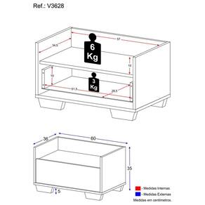 Dimensões do produto montado: Altura: 35cm | Largura: 60cm | Profundidade: 36cm *Você pode consultar as medidas internas na imagem técnica do produto.