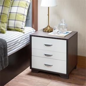 Mesa de cabeceira de madeira Acme Eloy com 3 gavetas e moldura de madeira em branco e preto