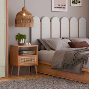 que tal a mesa de cabeceira alva? na hora de montar um quarto prático e bonito, a mesa de cabeceira alva é uma excelente opção. com estrutura em mdf e acabamento em pintura uv, ela tem ótima resistência para o uso e um visual sofisticado de encher os olhos: os pés palito em madeira e a telinha adicionam um toque charmoso e delicado à decoração, enquanto o acabamento amadeirado torna simples combiná-la com os outros móveis. dispondo de 1 gaveta e nicho, ela tem o espaço perfeito para guardar itens da rotina noturna e até mesmo um abajur para te acompanhar na leitura ao final do dia. perfeita, né? Marca: Modern