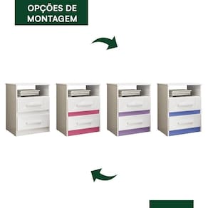Altura: 61 | Requer montagem: Sim | Largura: 46 | Profundidade: 39 Cor: Branco/Lilás