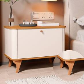 Mesa De Cabeceira Aruma Com Cantos Arredondados Com Divisória Off White Com Nature Com design moderno e funcional, a Mesa de Cabeceira Arumã é a escolha ideal para quem deseja unir charme, praticidade e organização ao visual é marcado pelos cantos arredondados exclusivos da linha Arumã, que transmitem sofisticação e . O puxador metálico com acabamento refinado e os pés em madeira maciça garantem elegância, robustez e durabilidade ao porta com divisória interna bem planejada oferece espaço prático para armazenar objetos pessoais, mantendo tudo sempre à mão e organizado, sem comprometer a estética do ões:Altura: 56,0 cmLargura: 75,5 cmProfundidade: 40,5 cmObservações:- Cantos arredondados exclusivos da linha Arumã- Puxador metálico com acabamento refinado- Pés em madeira maciça, conferindo robustez e durabilidade- Porta com divisão interna para melhor aproveitamento- Visual clean que valoriza a decoração Marca: Não Informado