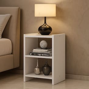 Mesa de Cabeceira Atenya 30x45cm com 02 Nichos Integrados: funcionalidade e estilo para complementar seu quarto ou outros ambientes da casa. Seu design clean e compacto é perfeito para quem busca organização e praticidade no dia a dia. Produzida em MDP, possui estrutura resistente e fácil de limpar. Conta com 02 nichos integrados, ideais para armazenar livros, objetos decorativos ou deixar o celular sempre à mão enquanto você descansa.