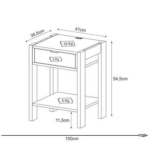 Peso Máximo Suportado: 3Kg Gaveta e 15kg Tampo.