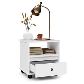 Mesa de Cabeceira Box com Pés em Rodízio Gaveta e Nicho - Beauty Móveis