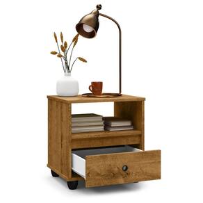 Mesa de Cabeceira Box com Pés em Rodízio Gaveta e Nicho - Beauty Móveis