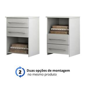 MESA DE CABECEIRA BRUNA | Com 2 gavetas em corrediças metálicas e espaço para livros a mesa de cabeceira Bruna vai deixar o seu quarto mais organizado. Possui um design moderno e puxadores cromados. Além disso, o produto possui uma fácil montagem. A mesa possui montagem flex com as gavetas podendo ser montadas tanto para cima como para baixo.