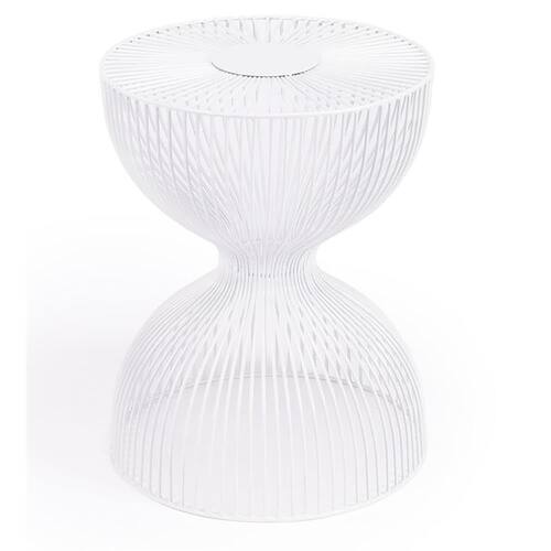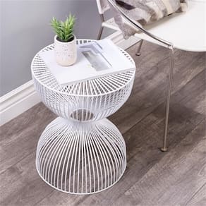 O acabamento branco adiciona profundidade, enquanto os espaços entre o fio de ferro permitem um design aberto. Características: Acabamento: branco Figura de ampulheta aberta Estilo moderno Especificações: Montagem necessária: Não Dimensões do produto: 14" L x 14" P x 17,5” H Peso do produto: 12 libras Capacidade de peso: 90 libras Material: ferroCor/acabamento: branco - Figura aberta em ampulheta - Estilo moderno