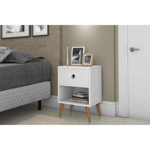 Mesa de Cabeceira C/ 1 Gaveta Pés Palito Retrô Branco- Rede Móveis