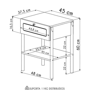 Conteúdo da embalagem: 1 Mesa de Cabeceira.