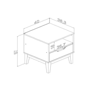 A mesa de cabeceira MB 1095 possui estrutura em MDP 15mm e acabamento em pintura UV. Costas 3mm. Possui 1 gaveta com corrediças telescópicas e que suportam 5kg e 4 pés em madeira maciça com altura de 20cm. Tampo em MDP 15mm. Produto suporta até 10kg. Conteúdo da embalagem: móvel, ferragens e manual de montagem. A fixação das peças e/ou acessórios é feita por parafusos, cavilhas e minifix. Para uma limpeza mais efetiva, utilizar apenas pano macio umedecido e sabão neutro. Não utilizar produtos abrasivos. Garantia de 03 meses contra defeitos de fabricação. Medidas do produto (AxLxP): 57x40x38,3cm. Peso do produto: 10,78kg.
