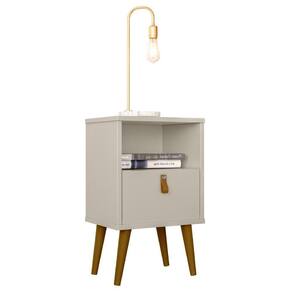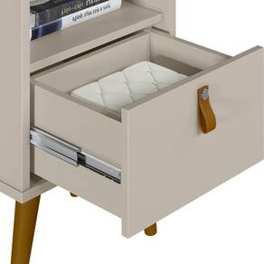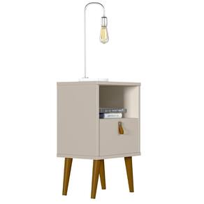 A Mesa De Cabeceira Com 01 Gaveta 01 Nicho 04 Pés em Madeira Loreta L05 Off White - Lyam Decor é ideal para você que busca organização e praticidade, possui uma gaveta de amplo espaço para armazenamento e um puxador em couro sintético que deixa o móvel muito mais charmoso, oferece um ótimo espaço em seu nicho e em seu tampo. Conta também com pés torneados em madeira que traz ainda mais modernidade e harmonia ao ambiente, além de contar com design exclusivo que vai atrair todos os olhares para o seu ambiente. Pode ser disposto em quarto, escritório, sala de estar ou até mesmo recepção. Dê o destaque que seu ambiente merece. Garanta já o seu!