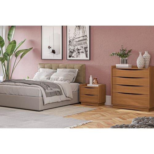 Seu quarto mais lindo e organizado com a Mesa de Cabeceira M261 da Kappesberg. Facilitando a organização, ela é produzida em MDP de 15mm, material de alta qualidade, o que proporciona mais robustez e firmeza, e medindo 52cm de altura, 54cm de largura e 38cm de profundidade, ela combina com todos os ambientes. Com duas gavetas, com corrediças telescópicas, que proporcionam um melhor aproveitamento de espaço, são perfeitas para peças menores ou acessórios, facilitando seu dia. E com puxador usinado, com abertura frontal, a mesa de cabeceira possui um design único. E com sete camadas de pintura na cor canela, na parte interna e externa, seu acabamento touch, com a textura dos veios da madeira, garante a sensação de conforto e aconchego ao espaço, deixando seu quarto perfeito. Acabamento da Gaveta: Pintura Acabamento dos Pés: Pintura Altura dos Pés: 8 cm Ambiente Principal: Quarto Complexidade da Montagem: Média: pode ser montado por mais de uma pessoa e/ou necessite de maior conhecimento para montagem Cor: Canela Cor do Produto: Canela Cor Interna: Canela Escala de Brilho: Fosco Escala de Brilho da Gaveta: Fosco Gaveta com Chave: Não Itens Inclusos: 1 Mesa de Cabeceira, manual de montagem e ferragens Linha ou Coleção: Dormitório Completo Manual de Montagem e Instalação: https://product-hub-prd.madeiramadeira.com.br/898836/documents/0f567790-c40b-494d-a58f-e9ba64f479b31870922m261.pdf Material da Gaveta: MDP Material dos Pés: MDP Material Principal: MDP Necessita Montagem: Sim Origem do Produto: Nacional Pés Reguláveis: Não Peso: 17,49 kg Peso Máximo por Gaveta: 6 kg Pet Friendly: Não Possui Espelho: Não Possui Possui Nichos: Não Possui Pés: Rodapé Possui Portas: Não Possui Prateleiras: Não Recomendações de Uso, Manutenção e Limpeza: Use um pano limpo e ligeiramente umedecido em água ou álcool (recomendamos álcool etílico hidratado). Logo após, seque a superfície com um pano seco e macio. Em grandes superfícies limpe pequenas áreas de cada vez, trabalhando de baixo para cima. Sapatas Niveladoras: Não Sistema de Montagem: Philips e Minifix Suporta Até (kg): 12 kg Tipo de Corrediça da Gaveta: Metálica Telescópica Tipo de Puxador da Gaveta: Não Possui - Abertura por Fecho Toque