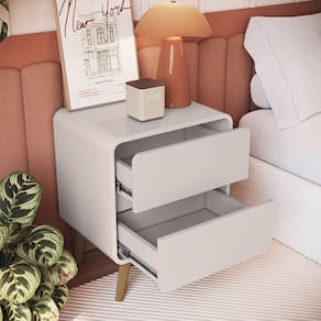 A Mesa de Cabeceira com 02 Gavetas Linha Curve da Completa Móveis apresenta funcionalidade,