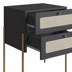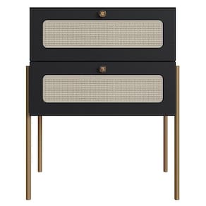 A Mesa de Cabeceira Com 2 Gavetas Pé Metal Arlo A10 Nero/Dourado, da Mpozenato, é a escolha perfeita para adicionar um toque de estilo ao seu quarto.