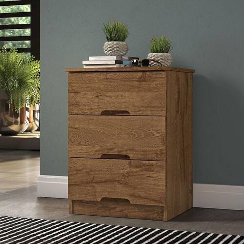 Mesa De Cabeceira Com 3 Gavetas - Londres-braúna - Móveis Europa - Blush