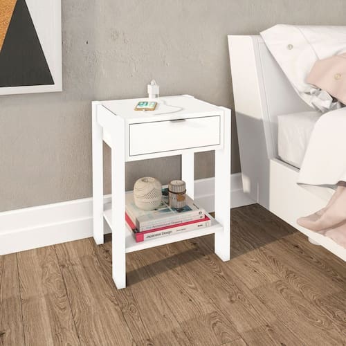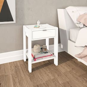 Mesa de Cabeceira com Tomada 1 Gaveta 41x54cm Branco Tecno Mobili