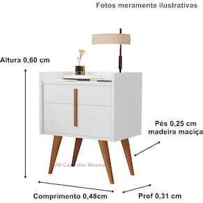 Mesa de cabeceira Davi 1188 estilo retrô, pés palito, embalado com caixa reforçada nas laterais para não ocorrer avaria no transporte.