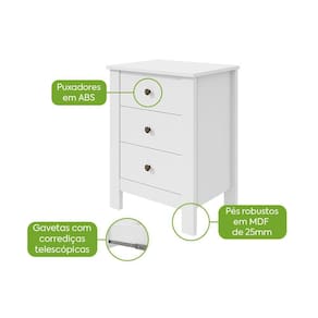 AS IMAGENS SÃO MERAMENTE ILUSTRATIVAS E PODEM SOFRER VARIAÇÕES DE COR E PEQUENOS DETALHES DE ACORDO COM O SEU MONITOR, ILUMINAÇÃO DO AMBIENTE E ATÉ MESMO A SUA PERCEPÇÃO de Cabeceira Dubai com 3 Gavetas New Branca