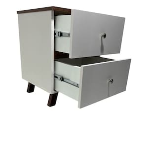 Suas duas gavetas espaçosas oferecem amplo espaço para armazenar objetos pessoais, mantendo tudo ao seu alcance e organizado. Produzida com materiais de alta qualidade, garante resistência e durabilidade, tornando-se um item indispensável para o seu quarto.