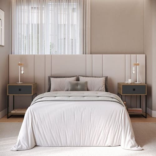 O conjunto duas mesas de cabeceira possuem estilo industrial e combinarão perfeitamente com seu quarto. Cada mesa de cabeceira possui estrutura metálica bem resistente e MDP em sua composição. Conta com uma prateleira e uma gaveta.