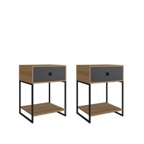 Mesa de Cabeceira Estilo Industrial com 2 Peças Mel / Grafite - Marrom