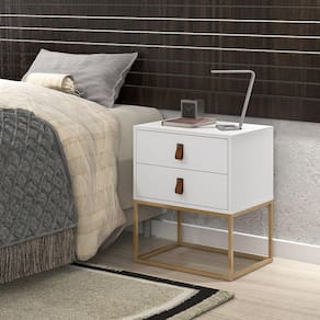 A Mesa de cabeceira possui os pés em ferro. As gavetas possuem corrediças telescópicas, o que dá maior qualidade, delicadeza e durabilidade ao produto e os puxadores em couro, somos pioneiros nessa tendencia que está bombando na europa.