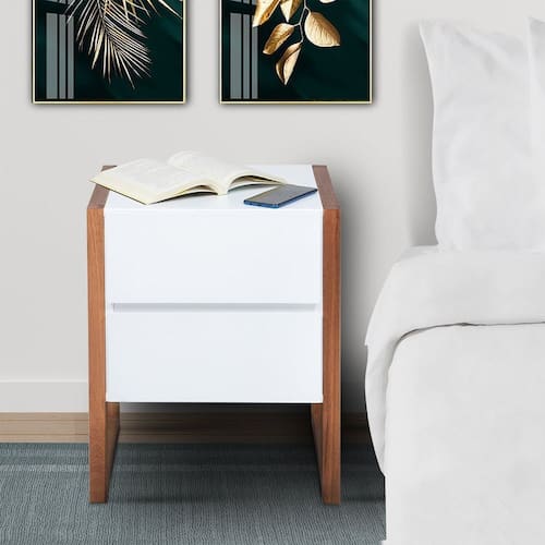 A Mesa de Cabeceira Fauri é o complemento ideal para o seu quarto. Com duas gavetas espaçosas, ela oferece um amplo espaço para armazenar seus itens essenciais. Seu design moderno e acabamento de alta qualidade trazem sofisticação ao ambiente. Produzida em MDF com corrediças telescópicas, a peça conta ainda com pés de madeira maciça de eucalipto reflorestado, com acabamento em verniz fosco, garantindo durabilidade e um toque natural ao seu espaço.