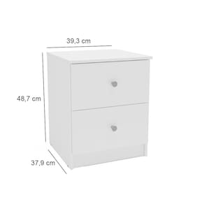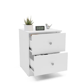 Características: Estrutura MDP Pintura UV Fosca 02 Gavetas com corrediças metálicas Puxadores em Plástico Peso suportado por Gaveta: 5kg