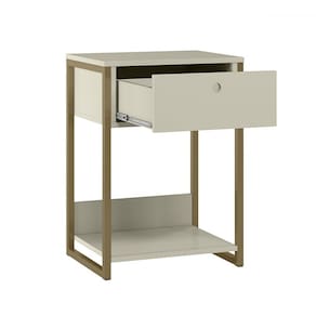 O(a) Mesa de Cabeceira Industrial 1 Gaveta Off White - Olivar Móveis é produzido em MDF e MDP na escala de brilho Semi-Brilho, e possui um grau de dificuldade de montagem: Médio.