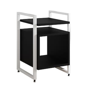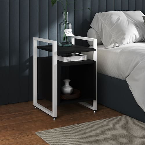 Mesa de Cabeceira Industrial Marrocos Ferro Branco e Tampo Preto