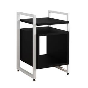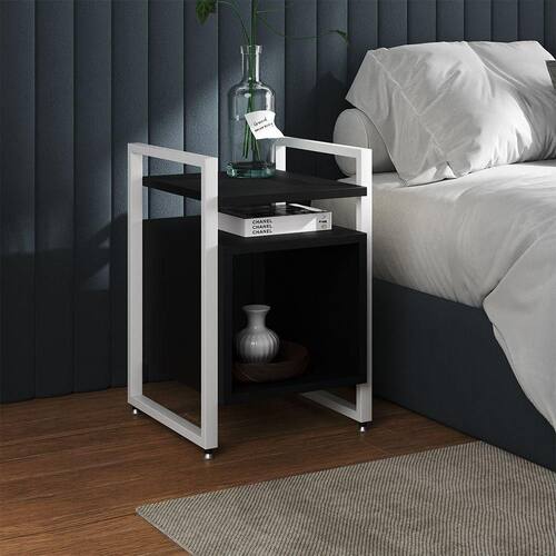 Mesa De Cabeceira Industrial Marrocos Ferro Branco E Tampo Preto