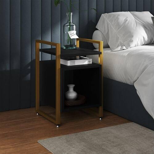 AS IMAGENS SÃO MERAMENTE ILUSTRATIVAS E PODEM SOFRER VARIAÇÕES DE COR E PEQUENOS DETALHES DE ACORDO COM O SEU MONITOR, ILUMINAÇÃO DO AMBIENTE E ATÉ MESMO A SUA PERCEPÇÃO de Cabeceira Industrial Marrocos Ferro Dourado e Tampo Preto
