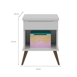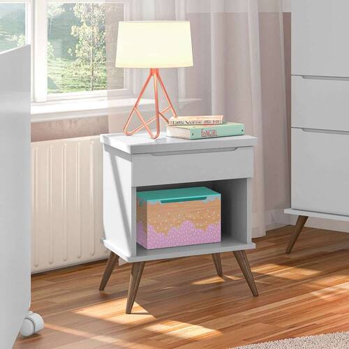 que tal a mesa de cabeceira infantil inda? para t mais organização e pde ao quarto das crianças, a mesa de cabeceira infantil inda é a escolha ideal! com 1 gaveta espaçosa que desliza suavemente graças às corrediças telescópicas, ela é perfeita para guardar pequenos objetos e outros itens essenciais, mantendo tudo sempre ao alcance. já o design destaca os pés em madeira, que também garantem estabilidade e segurança. assim fica fácil construir um quartinho aconchegante e completo para essa pessoa especial :) Marca: Modern