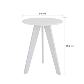 Mesa de cabeceira Kakau Retrô Móveis Peroba Branco Brilho. Mesinha Kakau com estilo Retrô, produzida em 100% MDF. Produto versátil para utilização em vários cômodos da casa, no quarto do bebê é muito útil como mesa de apoio. Com altura de 69,7cm e 54cm de diâmetro. Acabamento em pintura U.V. e bordas com acabamento laqueado. Possui 3 pés em MDF com 68,5cm de altura. Ean: 7909903178409