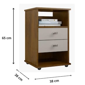 Seu design inteligente combina duas gavetas espaçosas, equipadas com corrediças metálicas que garantem abertura suave e segura, além de um nicho aberto, ideal para deixar livros, objetos decorativos ou aquele item que você gosta de ter sempre à mão.