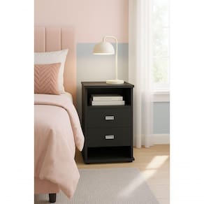 Seu design inteligente combina duas gavetas espaçosas, equipadas com corrediças metálicas que garantem abertura suave e segura, além de um nicho aberto, ideal para deixar livros, objetos decorativos ou aquele item que você gosta de ter sempre à mão.