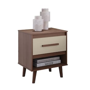 Mesa de Cabeceira Mila Pés Retrô com 1 Gaveta - Savana/Off White Móblis