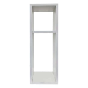 Suas medidas são: 60cm de altura x 20cm de largura x 20cm de profundidade. Possui um nicho interno medindo: 18,5cm de altura. Produto suporta até 3kg.