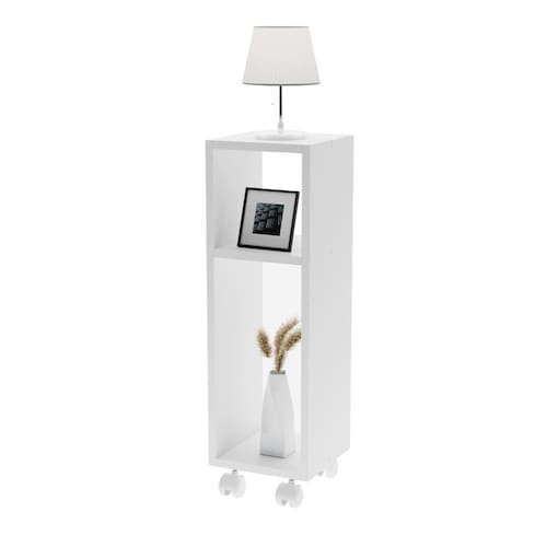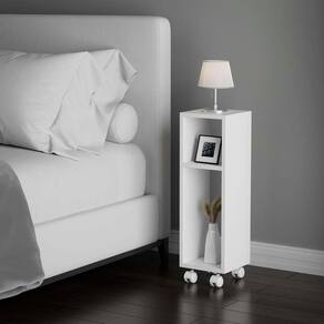 Mesa De Cabeceira Pequena com rodinhas 20x20x60cm Branco Quarto Sala