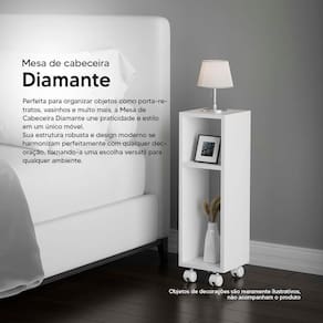 A Mesa de Cabeceira Safira Branco com Rodinhas é o que faltava para dar aquele toque especial na decoração da sua casa.