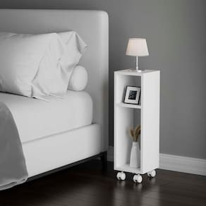 Mesa De Cabeceira Pequena Com Rodinhas 20x20x60cm Branco Quarto Sala A Mesa de Cabeceira Safira Branco com Rodinhas é o que faltava para dar aquele toque especial na decoração da sua casa. Ideal para ambientes pequenos e espaços compactos, a mesa de cabeceira Safira ocupa pouco espaço, possui compartimentos para decoração ou objetos pessoais, deixando tudo o que você precisa o seu alcance.