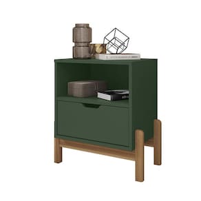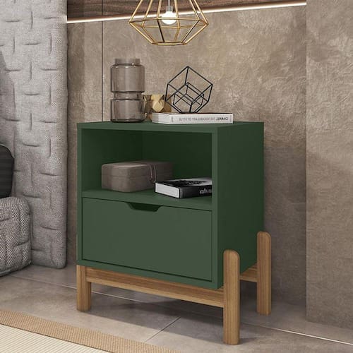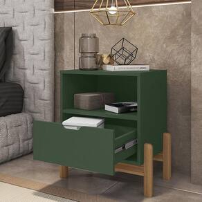 Mesa de Cabeceira Quarto Antares 1 Gaveta Pés Madeira Maciça - Verde Musgo