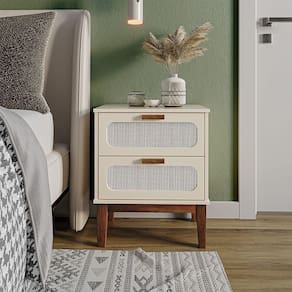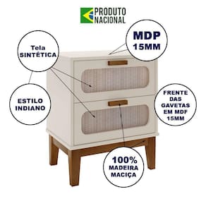 AS IMAGENS SÃO MERAMENTE ILUSTRATIVAS E PODEM SOFRER VARIAÇÕES DE COR E PEQUENOS DETALHES DE ACORDO COM O SEU MONITOR, ILUMINAÇÃO DO AMBIENTE E ATÉ MESMO A SUA PERCEPÇÃO de Cabeceira Quarto Base Madeira 2 Gavetas 45 Cm Tela Indiana Santorini Off White