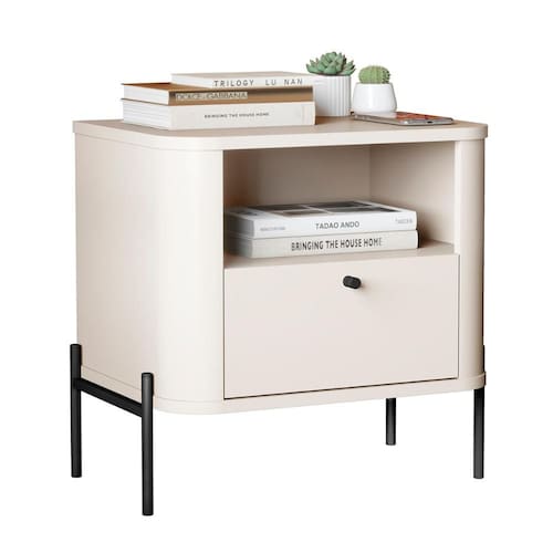 Conta com 1 gaveta com corrediças telescópicas e puxador em metal, oferecendo espaço eficiente para seus objetos essenciais.