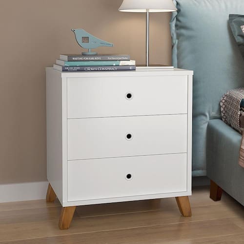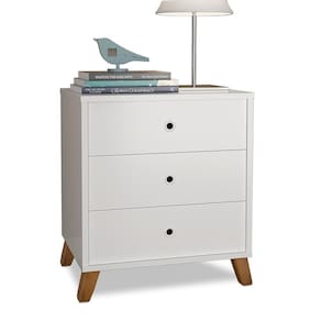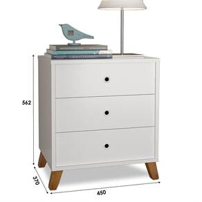 Mesa De Cabeceira Retro 3 Gavetas Branco Granada